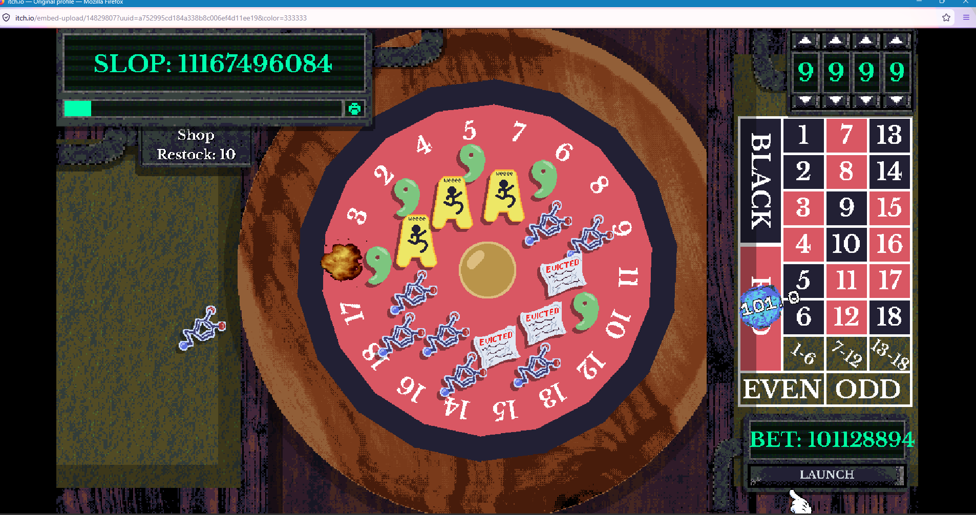 my computer sadly crashed before i could see my total slop score, but i got this screenshot of me with 11.16 billion slop after feeding the slop maid ~9 billion (on the previous level alone)... thank you slop city mayor, this game was fun :3