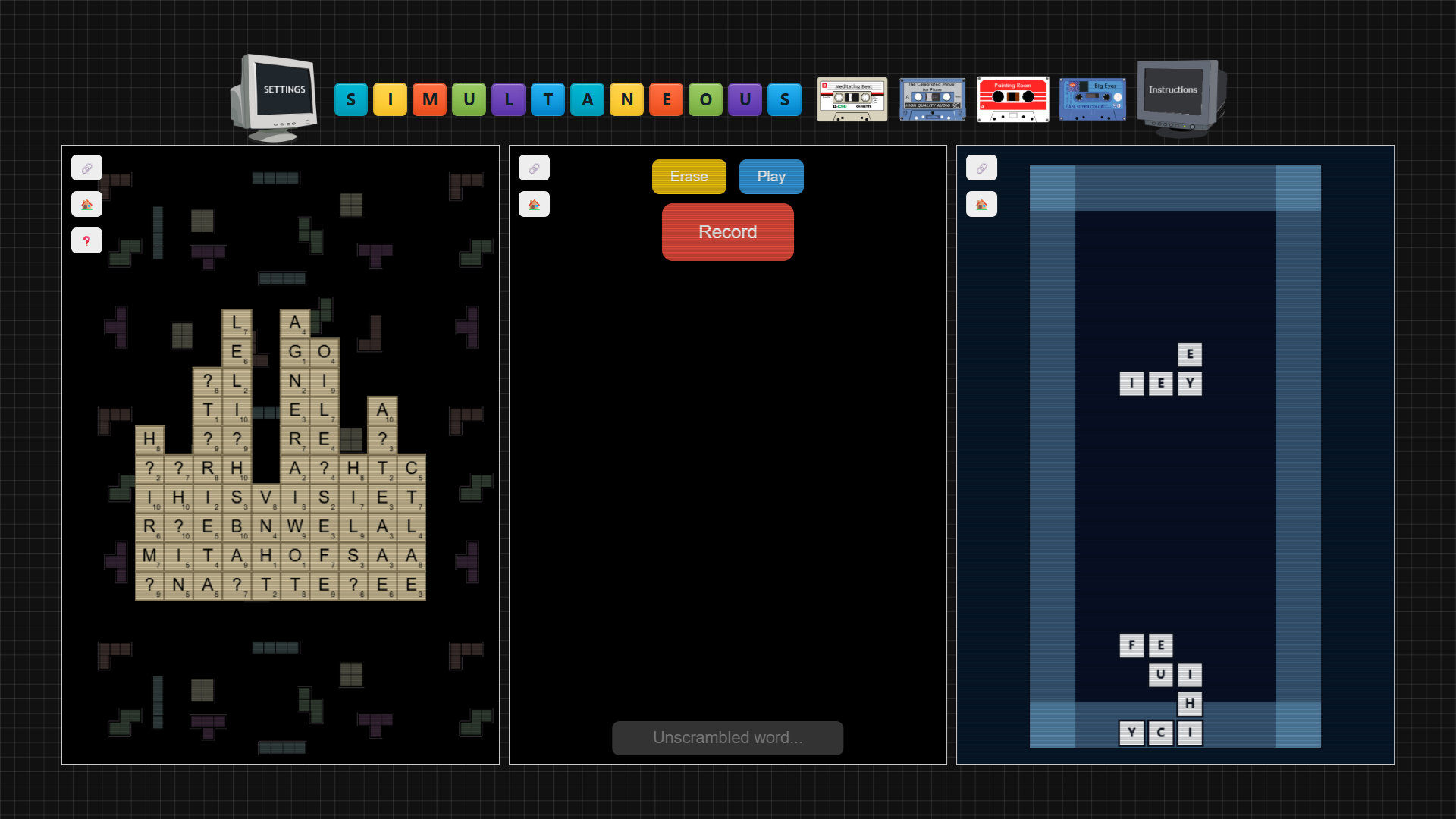 Please feel free to try my Scrabble Scramble - a month long jam that I just completed.