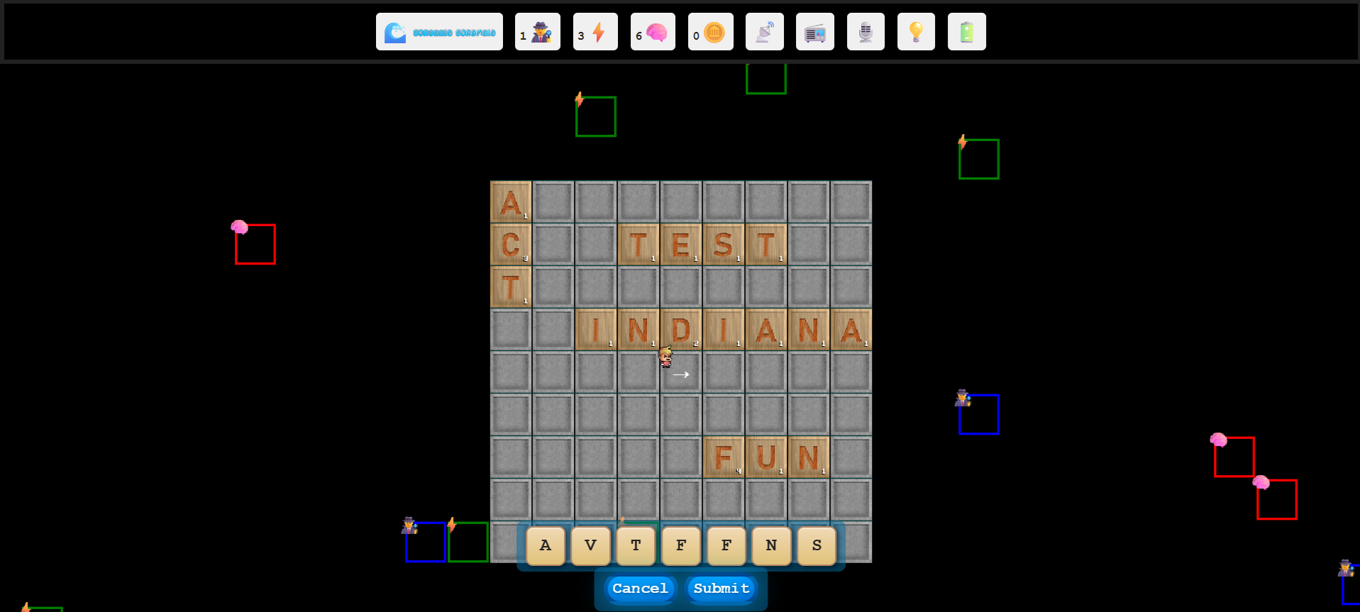 Multiplayer scrabble game - Waves 5,6,7,8,9 have extra waves modes enabled which can make it a challenge to place words - https://itch.io/jam/game-off-2025/rate/4006867 - Scrabble Scramble - We All Value English Scrabble (WAVES)