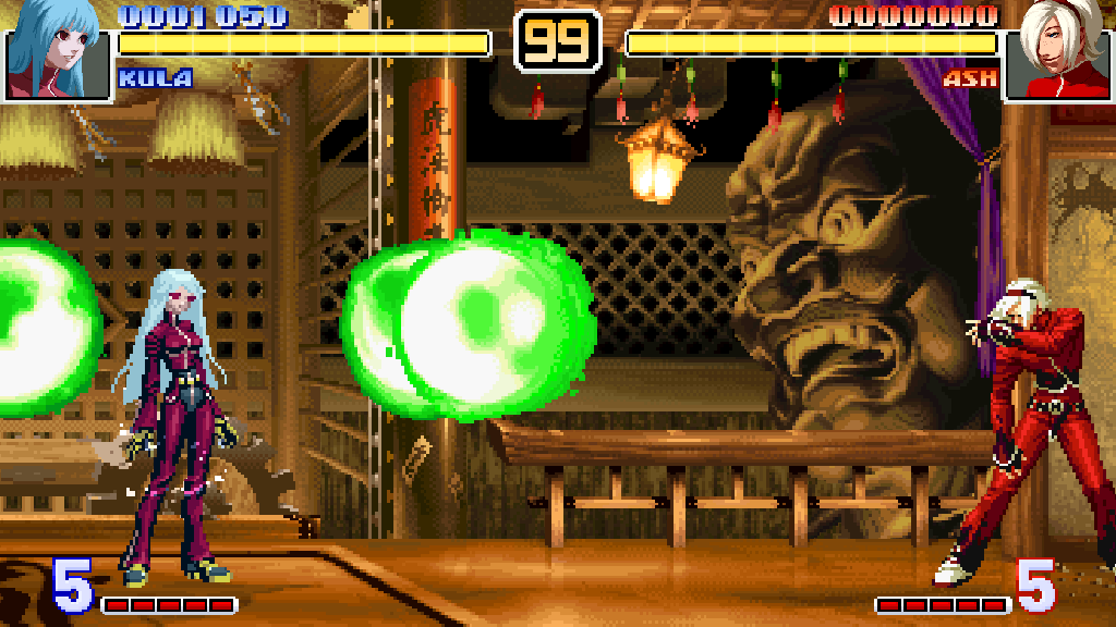 May Lee: She can't reflect fireballs in her second fighting stance, but in KOF 2001 she can do it. I don't know if this is a bug or if it's programmed that way. Could you check?