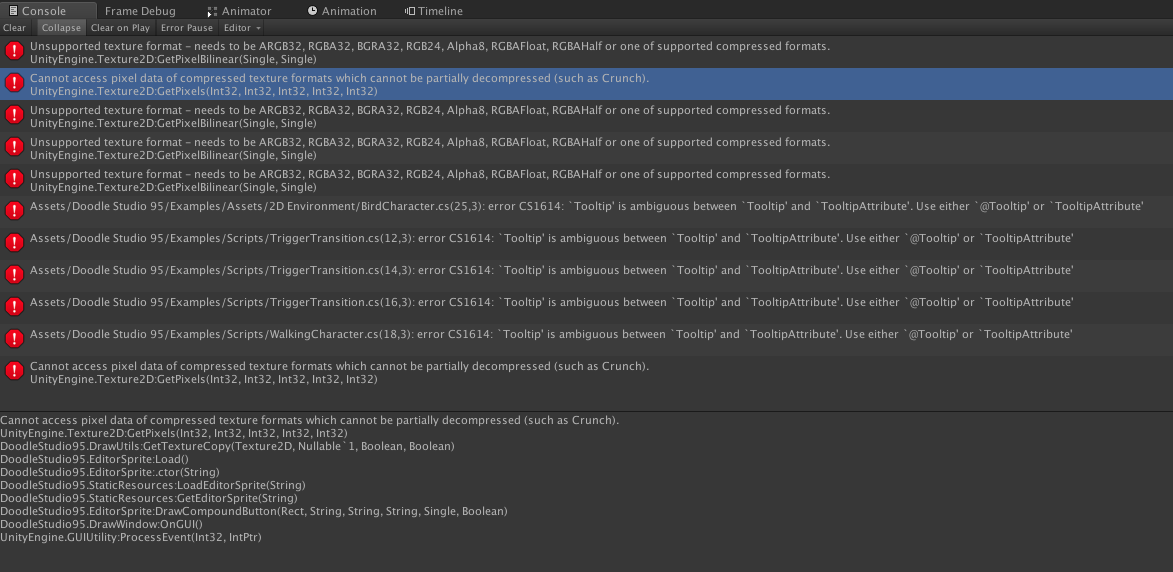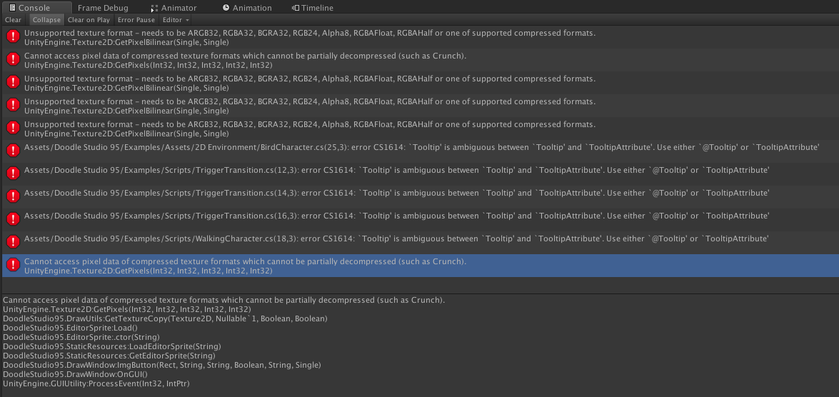 Doodle studio seem to work after brief trial. What doesn't work tho is Ink brush feature. Otherwise there seems to be issues with very long saving or loading times - it seams to be related to some of those Texture formate errors I get. I am sending screenshots of every error I could gather.