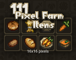 16x16 pixel art items for farming, survival, crafting etc. games. Contains seeds, tools, food, goods and more.