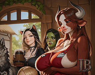 Step inside the tavern, a warm lively scene blending fantasy charm with a hint of seduction.