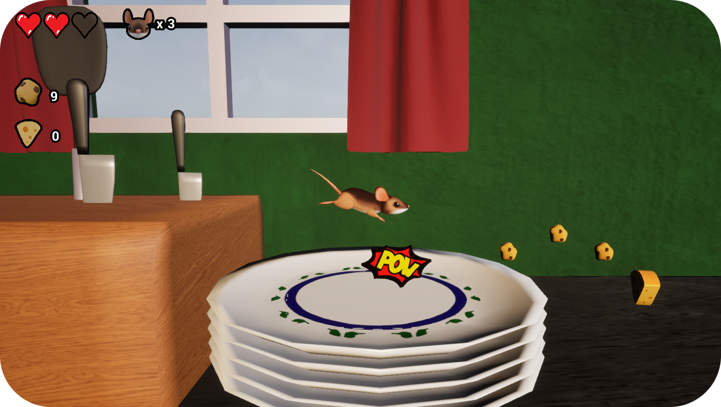 Hey there, this is our game Cookie crumble! Its a 3D platformer where you play as a mouse, trying to get as many Cookie Crumbles as you can. Beware of the dangers in a kitchen! We hope you enjoy playing and would be very thankful for some Feedback! :)