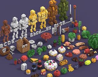 26 robots in voxel style. With vox format source file and character movement script.