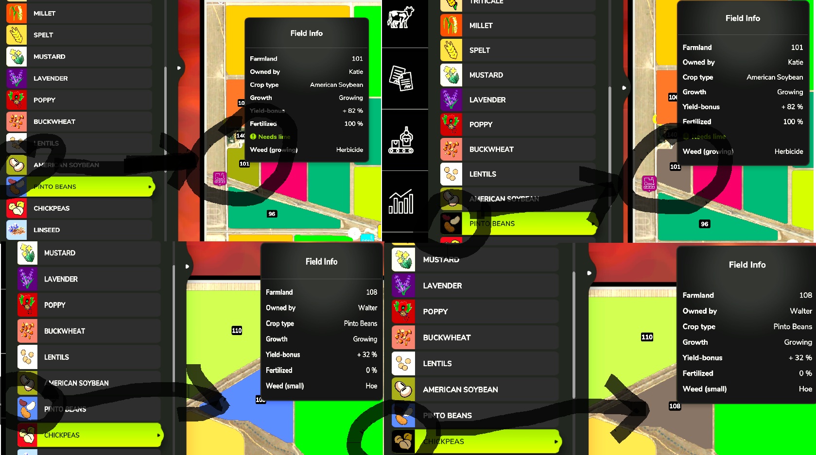 Found a small issues in your last update, nothing crazy or game breaking, just some crops in the Map Section that doesn't highlight the right field when you click on them. Seems to start with American Soybeans. In example when u wanna see in which fields the American Soybeans are, u need to click on the Pinto Beans to highlight them on the map and all the crops below act the same ways.