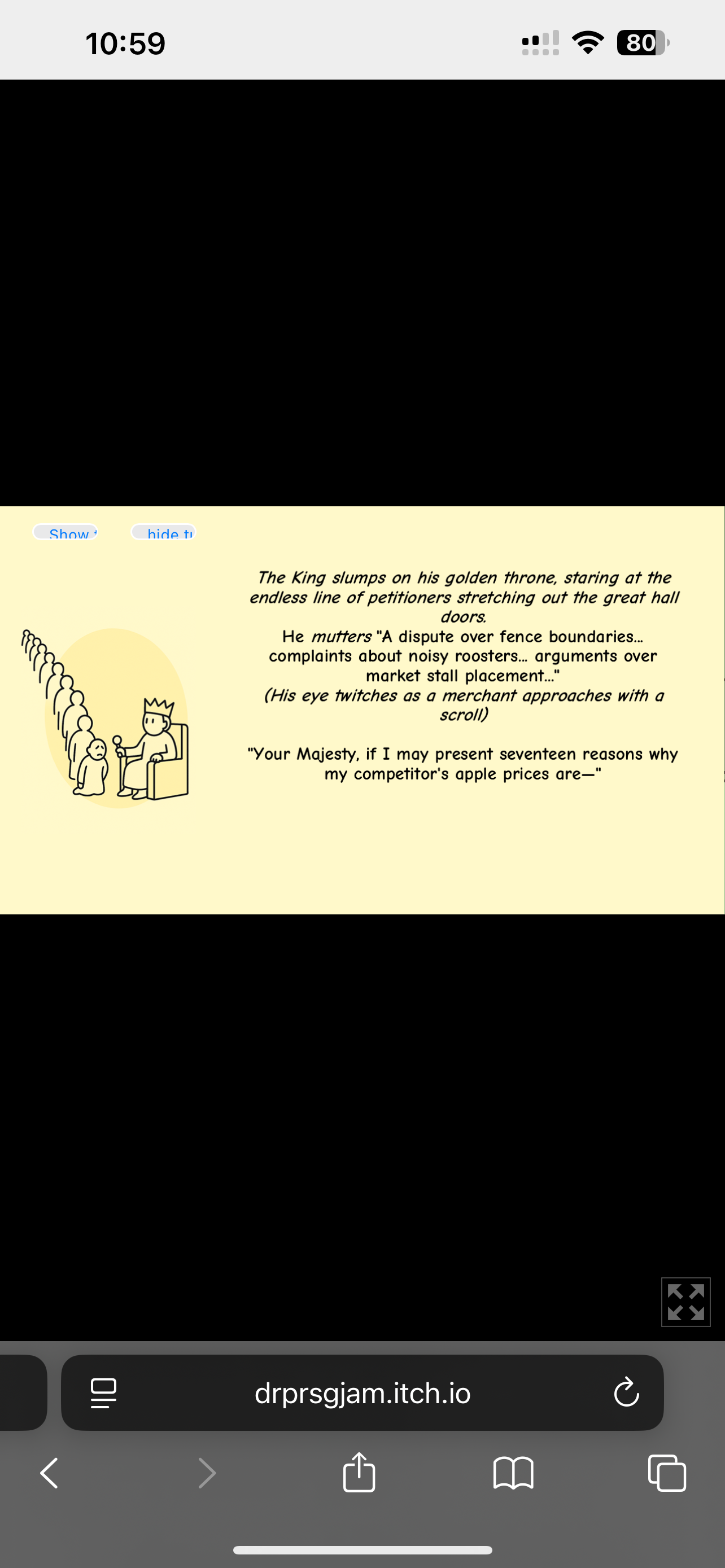 Five stars from the top because it’s one of the only games in the jam so far I can play on mobile so one of the only I have had chance to test in off time. Will give more of a dig soon but this is dope. 🔥🔥🔥