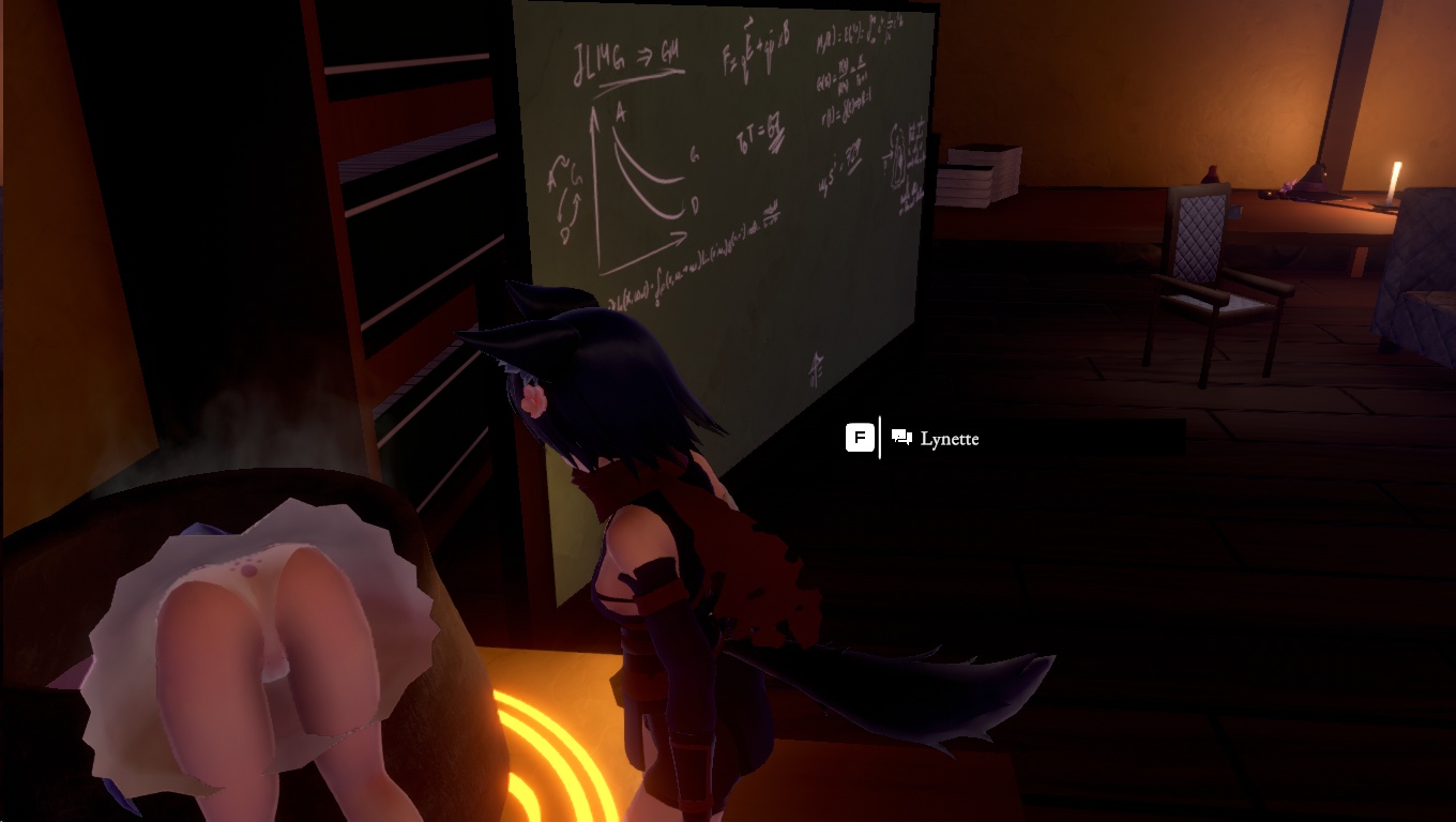 I absolutely love the presentation, great UI, sweet color palette on textures, low poly (not that low but you know) models, those text animations, it's marvelous, coherent, you just want to play more and more. Maybe something could be done with lo-res filter as it might muddy the graphics too much and does more harm than good but I don't hate it. I like the introduction with cleaning the room, picking up items and doing some magic. "Q" for picking up isn't natural for me though, I was constantly trying to pick up stuff with "e". Are mouse buttons utilized at all?