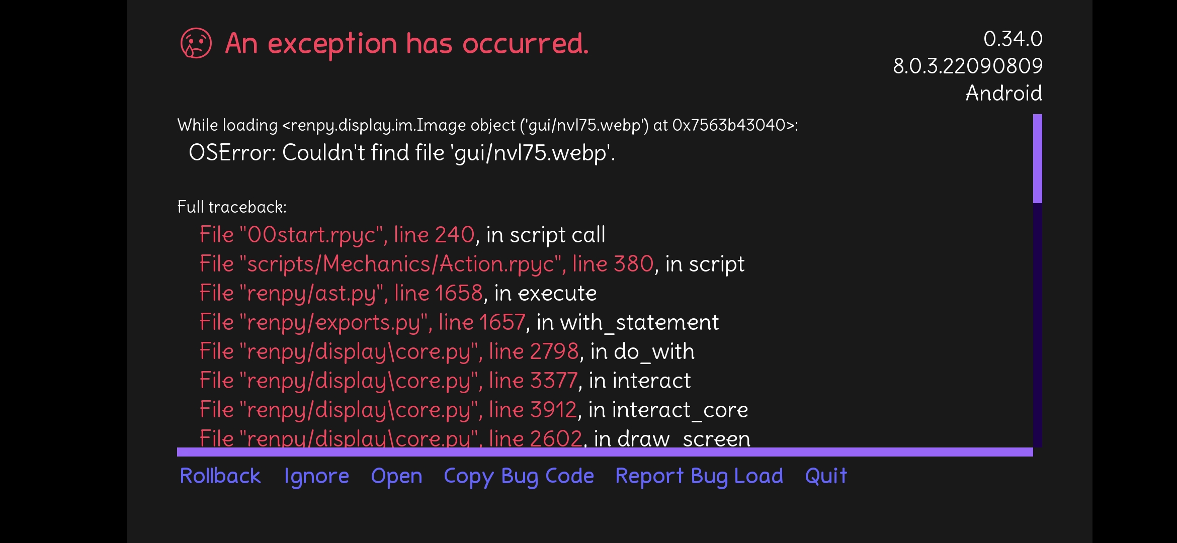 I got this error when i try to skip the intro but it does effect the game when i hit ignore so it should be fine but i haven't continued from my saved spot so i don't know if this error will show again.