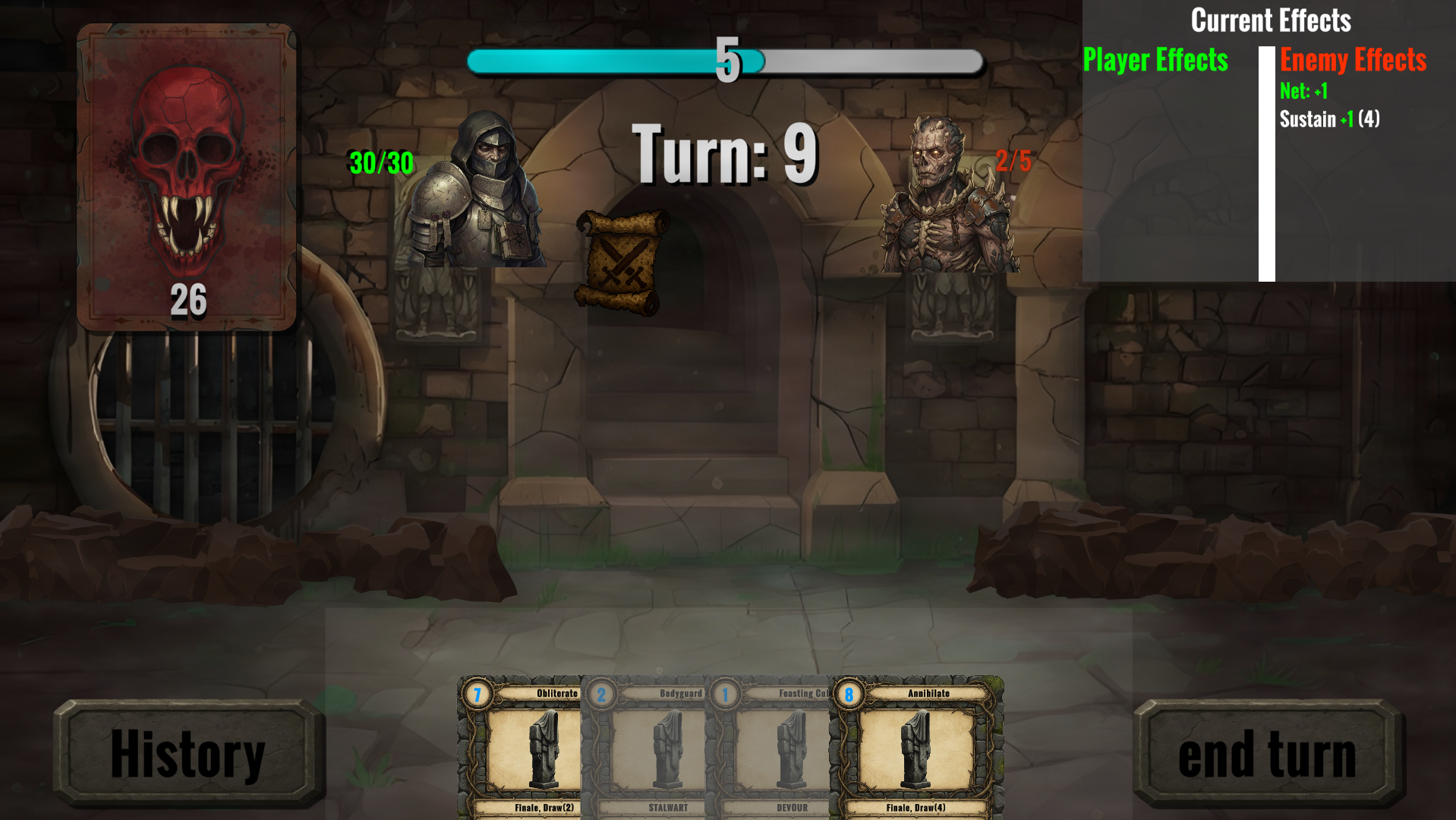 In each encounter, the player fights an increasingly difficult opponent using a randomly generated deck, forcing them to quickly identify and exploit synergistic keywords rather than relying on a curated build. Combat is turn based and heavily influenced by turn order mechanics, making timing and sequencing just as important as card choice.