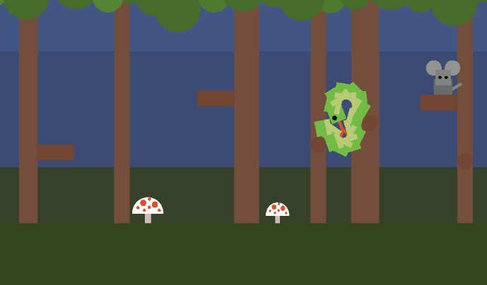 Score of 40! Diagonal movement was a fun surprise, but it made hairpin turns harder. I kept hitting myself while trying to 180. Hit boxes were a little weird. There were times when I thought I had the apple, and then I didn't. Hard to exit. Had to terminate the program from Windows. Visuals were nice and clean. Music was cute and slightly...ominous.