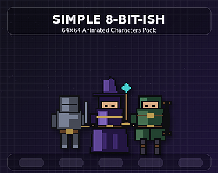A simple / 8-bit-ish (chunky) 64×64 pixel character pack with PNG spritesheets per animation