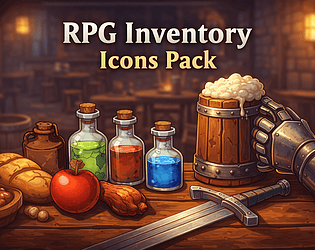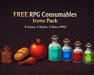 A free starter set of clean RPG consumable icons (potions + food).