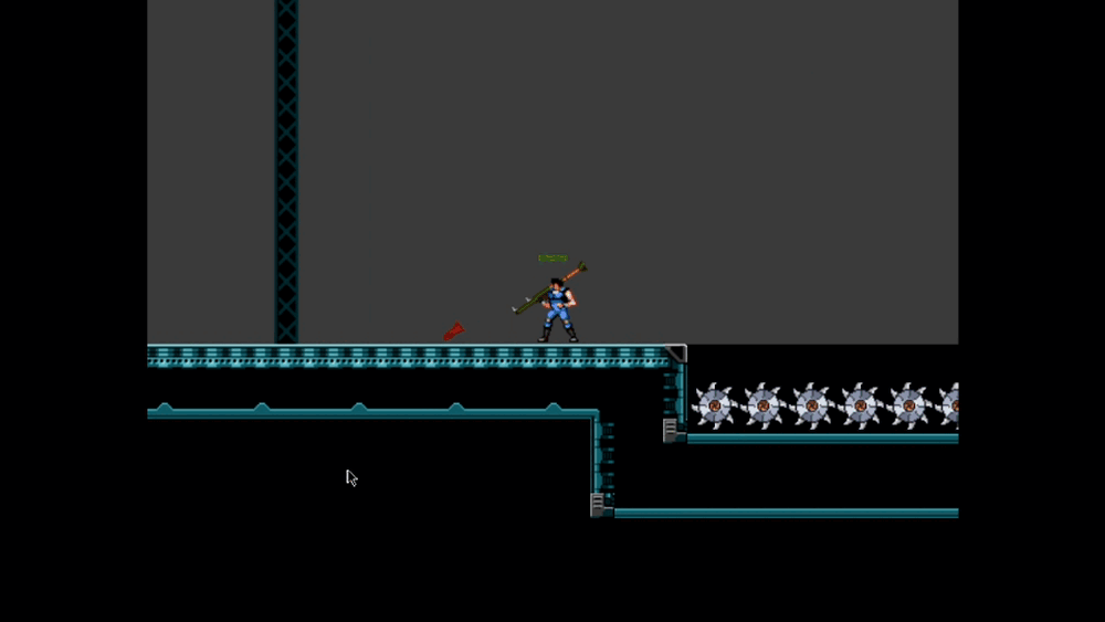 I need to work on the air control... the idea was to give the player only three keys; left, right and fire. 'Up' does nothing but since air control is a staple in platformer games (let alone metroidvanias) I had to know I could not just remove 'up' at least to look up. I had to help the player control in-air with the controls including 'up' so you actually go up. Again, I did as much as I could with the time I had, so....