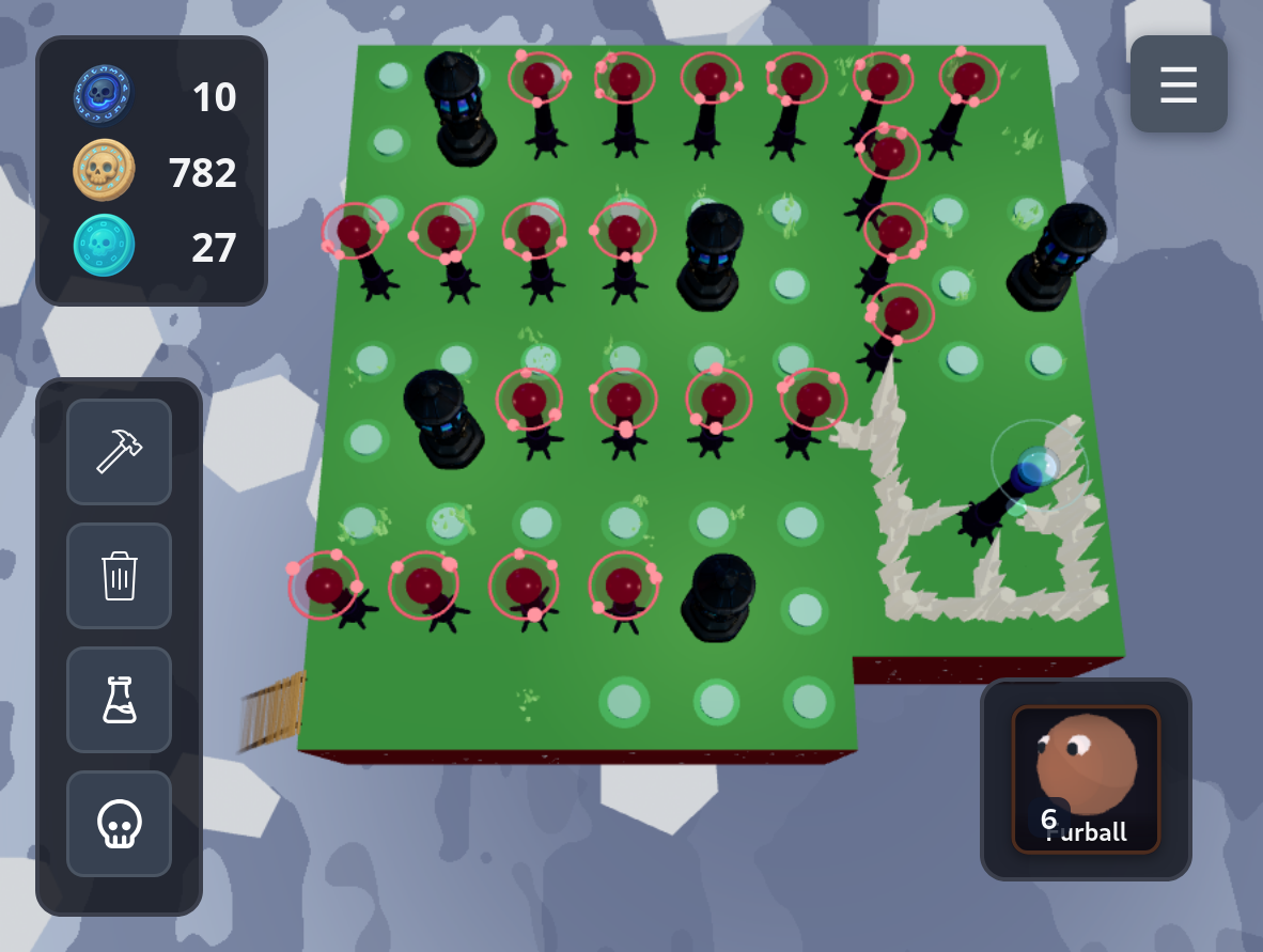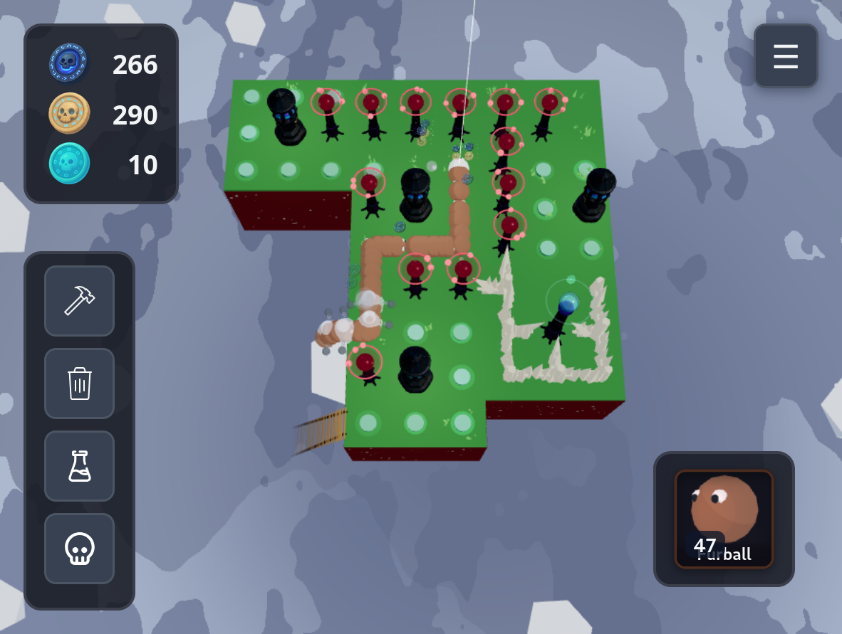 Anyway! I thought it worked pretty well! It was fun to figure out how the towers worked... and then to construct a labyrinthine path to keep the creatures busy.