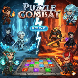 Puzzle combat by mastersolox1991Game Overview: Competitive Combat Puzzle This is a fast-paced, head-to-head puzzle battler (similar to titles like Puyo Puyo or Tetris Attack). The core objective is to out-maneuver your opponent by clearing your board and flooding theirs with "garbage" blocks until they top out and lose. Core Gameplay Mechanics Matching & Chain Reactions: You clear blocks by grouping same-colored pieces. The strategy lies in setting up Combos—arranging blocks so that one match triggers a vertical "cascade" of further matches. Offensive Pressure: Every time you clear a large group or trigger a combo, you send "Garbage Blocks" to your opponent’s screen, making it harder for them to move and bringing them closer to defeat. Special Blocks: Star Blocks: Trigger massive chain reactions when matched next to same-colored groups. Bombs: Clear all blocks of a specific color instantly, acting as a "reset button" when your board is too full. Strategic Elements Hero System: You choose a character with a specific playstyle: PYRO: High-pressure, aggressive offense. FROSTY: Defensive control and stability. DEMIGRA: Unpredictable "chaos" tactics. SUPER Abilities: Each character has a unique "Super" move that should be saved for "clutch" moments—either to finish off an opponent or to save yourself from losing. Speed vs. Accuracy: Using the Fast Drop allows you to play faster than your opponent, but you must balance speed with the tactical placement needed for high-scoring combos.modes: arcade,vs,2 player, endurance, with leaderboards.