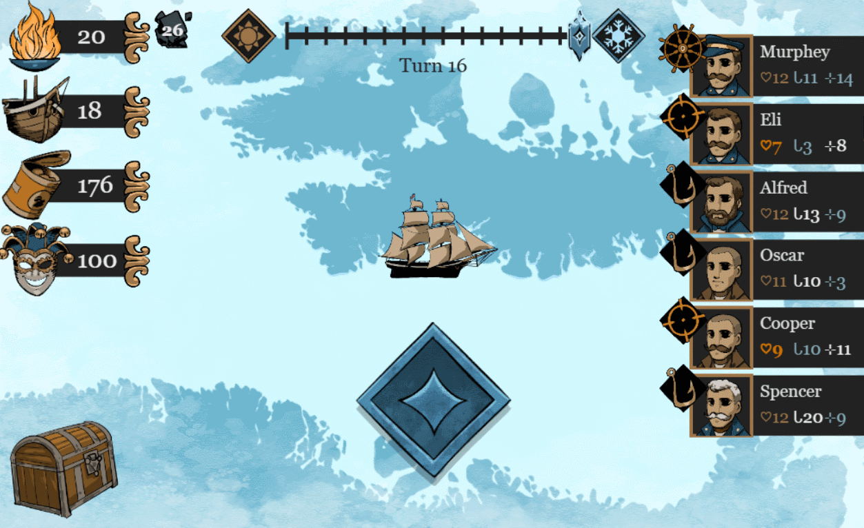 Polar Night is a historically-inspired card-based survival strategy game made in 9 days for the HistoricallyAccurate Game Jam #10. You play as the captain of an expedition whose mission is to explore the Arctic and find a route to Asia. Face the many hazards and obstacles the Arctic, including the worst nightmare of all, the 4-month long night known as the Polar Night.