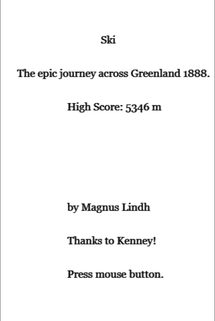 This is an interesting take on the SkiFree-style, it looks like you mixed in some Flappy Bird style mechanics as well. My main issue with it, though, is the controls. They are really confusing to me, maybe because this wasn't intended to be played on PC, but yea I would have preffered if you did some very simple Right Arrow/Left Arrow thing, or something of that sort, would make the game way more fun to me. Great work nonetheless!