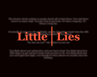 On this note, I think it's important to be aware of writing for voice, or writing for reading. As an example, I think the Stanley Parable would be overwhelmingly cringey if it was text-based. The delivery of a voice actor can do a lot to make something into really good comedic writing, where otherwise it would fall flat. So that said, I think the formal limitations got in the way of what might actually be a good bit of comedy if it were executed differently. But that's the way of a jam! There are still a few straggling language errors as well, which could do with some careful revision, but again; jam limitations. Overall I'm impressed with result under the circumstances.