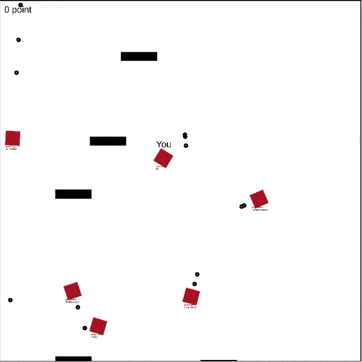 If there are no players online, bots are around to play! Bots walk to an object or border and they turn around in a random direction, and keep walking. They also shoot at random times to make them more realistic.