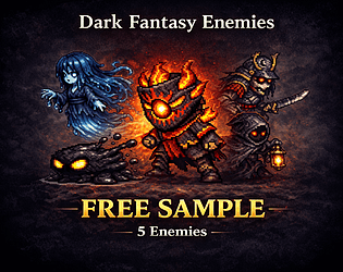 A free five-enemy sample set inspired by Japanese dark fantasy for side-view dungeon and action games.