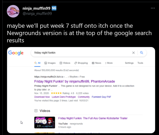 week 7 is currently a timed exclusive for newgrounds and will not be downloadable for a long or short amount of time. I want to put some emphasis on timed exclusive, because many people have assumed this means that it will never be downloadable. Timed exclusive means 'temporarily only available here'. IT WILL BE DOWNLOADABLE EVENTUALLY. I just want to make that clear. I'm no ninjamuffin, I'm no PhantomArcade, but I can assure you that timed exclusive means it will come soon.