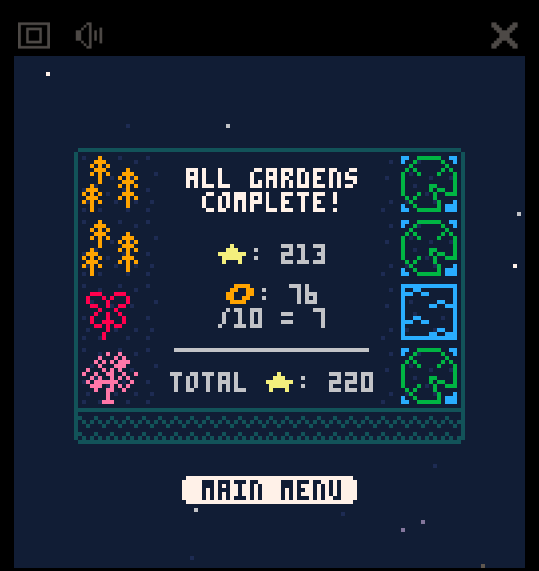 At first I expected there to be a point objective per garden and was a little confused when I couldn’t find it on the screen :D That’s not a criticism, just how I felt at the moment. I also wonder how it would feel with a “hold” mechanic, like you can hold a piece in Tetris and use it later.