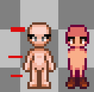Now a potential but tedious solution would be to cut memao sprites like I've shown below (2 from head, 1 from torso/arms, 1 from knees). SDV sprites are 5px shorter than memao, cutting 4 px down brings it much closer to what you would need. You might be able to get away with 1 in head(so 3 cuts total), though I'm not sure what exactly needs for it to look best in sdv. 3 cuts might be easier to deal with on the other animations as well. If you need a pixel art program, Libresprite is similar to aseprite and free. You can also compile Aseprite from GitHub for free if you don't want to pay for it on steam or itch.