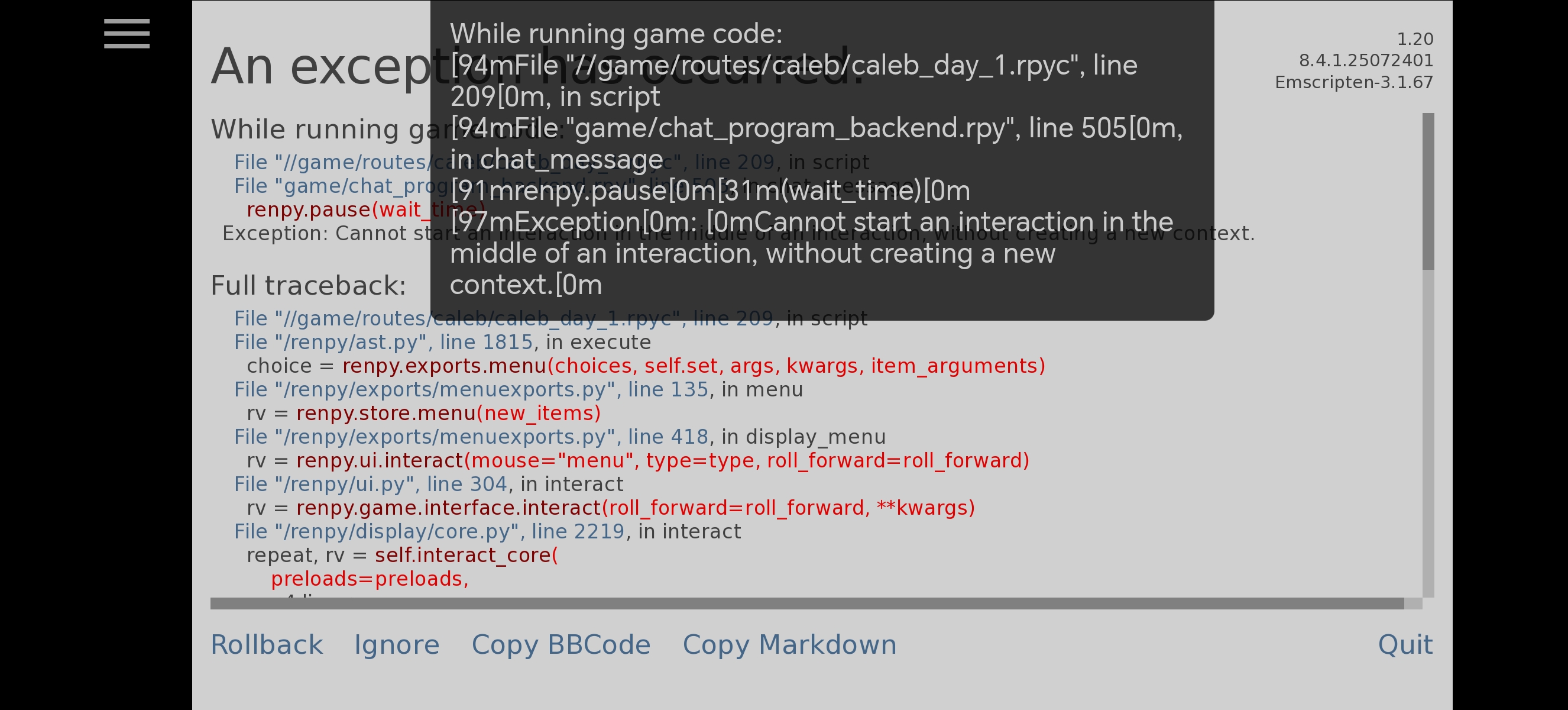 I get this red error bar that doesn't reaaaally affect the experience in my opinion, but I suppose it'd be something of note!! Also, if it is useful, I am playing with male ROs!