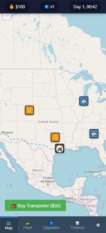 Idle Supply Chain Management is a real data based logistics and supply chain management simulator where players build and optimize a nationwide transport network across the USA. The game focuses on the movement of item from producers to consumers via a fleet of autonomous transporters and strategic distribution hubs.