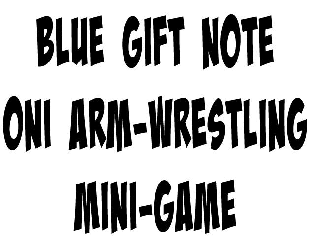 The fourth of my blue gift note mini-games, you must defeat an Oni in an arm-wrestling match, in the form of a luck-based randomized guessing game, where you must use the number keys carefully and gain a total of two victories to win.