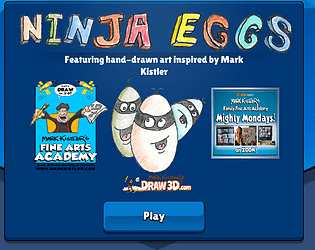 Ninja Eggs is a 2D "Angry Birds" clone featuring hand-drawn art inspired by artist Mark Kistler of PBS fame (The Secret City, Imagination Station).