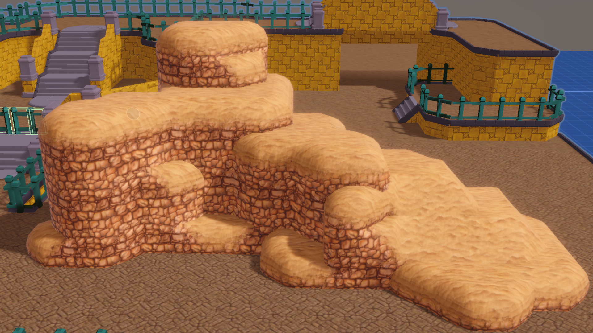 The default tilesets are reminiscent of Octopath Traveller, but you can easily swap the textures to achieve a different looks: MAPGrid's default tileset using LowlyPoly's texture pack from the asset store.