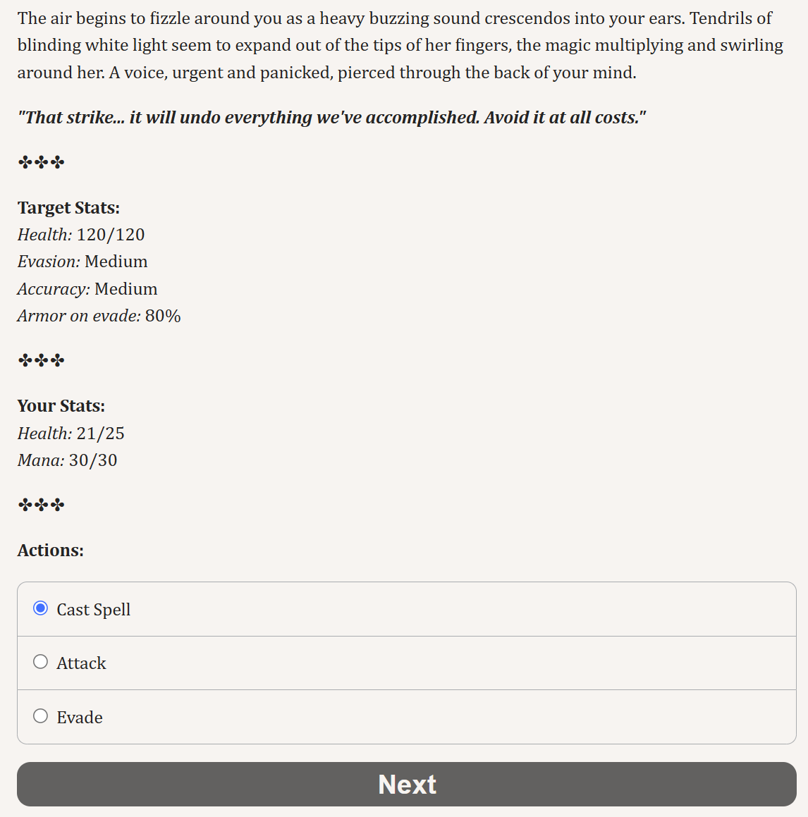 Anyways, if you have any suggestions to improve the game, please go ahead an leave a comment. This is my first choicescript game, so I'm looking for feedback.