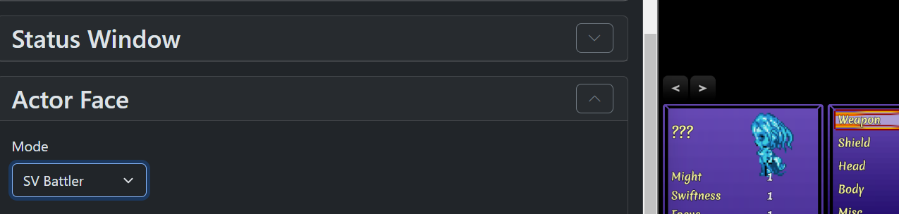 I have encountered a problem with the Skill and Status plugin not showing the right sv battler. When on 'Face' it's the right one. When on 'Sv battler' it shows the same for both, even though the sprite showing up is an old sprite that I don't use anymore, who is not even in the database.