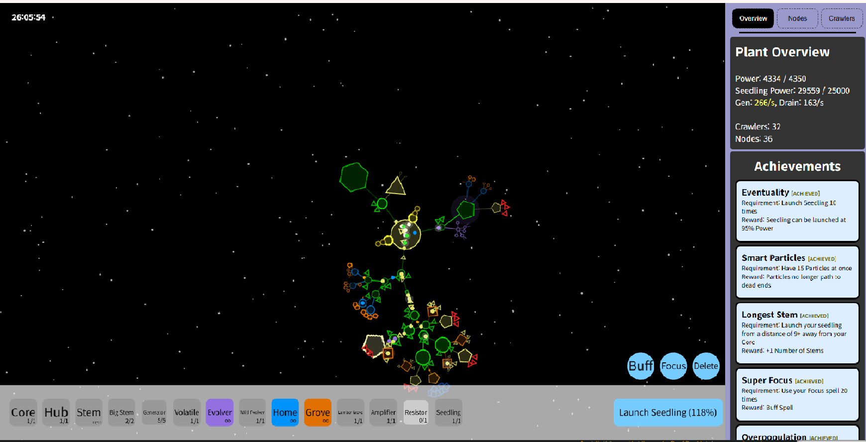 the hub upgrade cost growth should be weakened A LOT. such as, not like base*mult^level but base*level^(2+0.1*level). and the hub should have a feature to increase the collecting speed of energy. and there should be upgrade that increases specific building's max energy or transportation speed. several teleporter or logic units(such as and/or/not, or particle sorter unit). also it would be a good idea to add drone(like crawler but can fly), or connecting the nods each other like web.