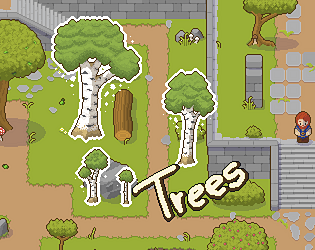 This free 32x32 top-down RPG tile set includes a variety of assets for creating outdoor environments. It contains detailed grass tiles, well-connected path tiles, small plants, leaves, flowers, trees with flowers and fruits, tree stumps, logs, rocks, and mushrooms in different sizes and variations. There are also ground flora tiles, bushes (with flowers and berries) of various sizes, and cobblestone path with multiple design, providing flexibility and consistency for natural landscapes.