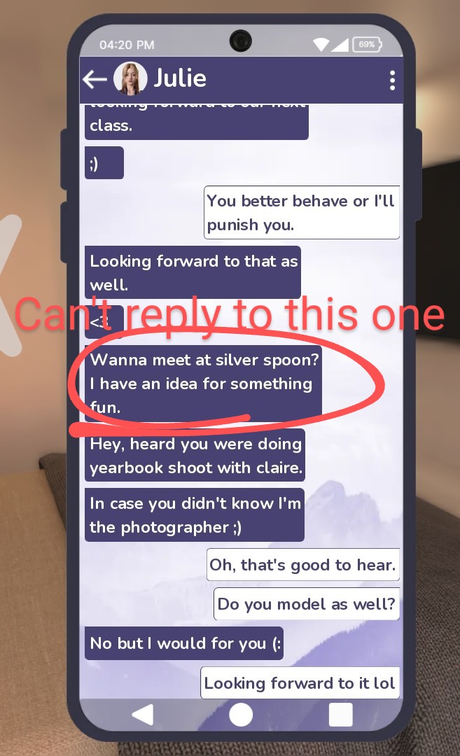 I'll try starting a new game to recreate the problem. But i don't think it was due to another quest. When I couldn't reply to the message I just kept playing and eventually i got to a point where she messaged me further as you see in the screen shot. It wasn't taken when i encountered the problem. It's happened in both of my playthroughs so far