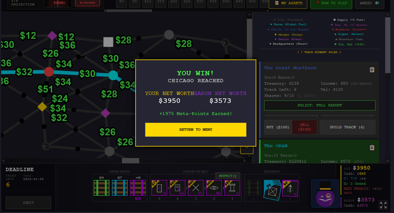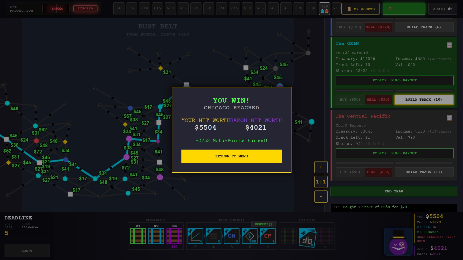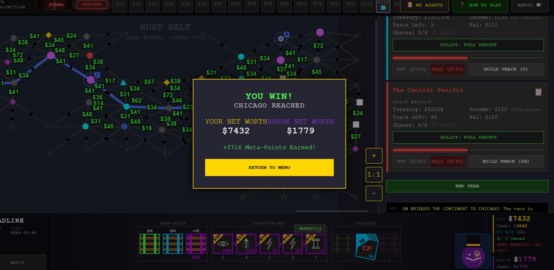 - The Payout: The Company buys the steel from YOU. The game deposits $10 per track unit directly into your Personal Cash.