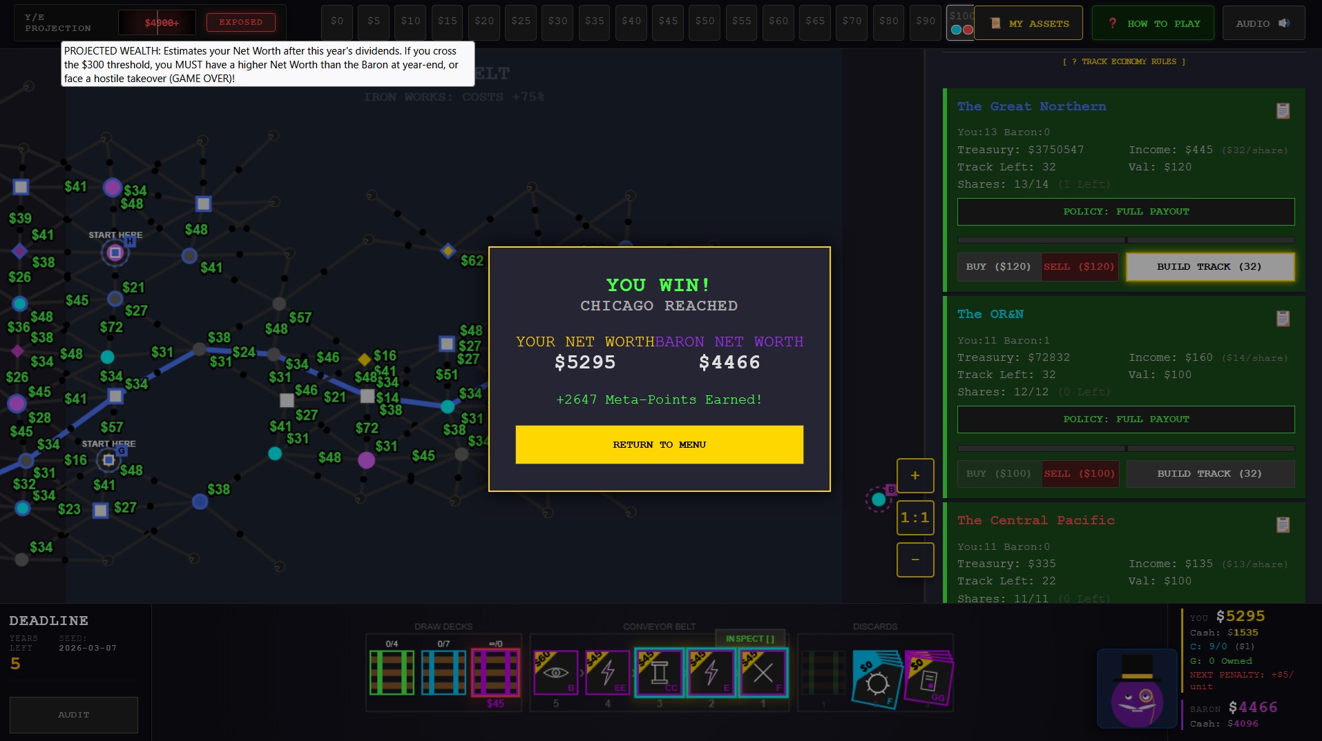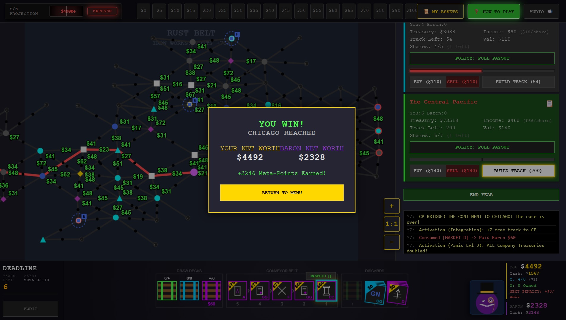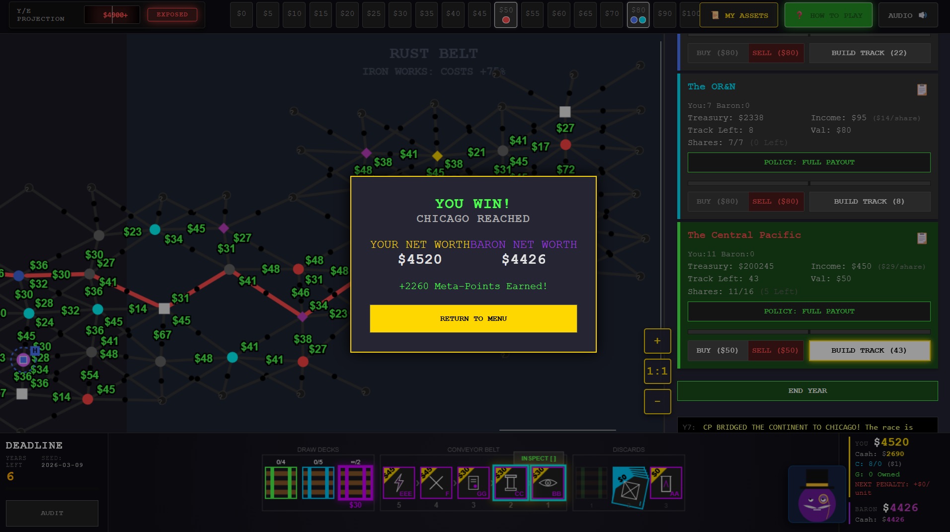 - The Payout: The Company buys the steel from YOU. The game deposits $10 per track unit directly into your Personal Cash.
