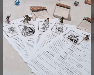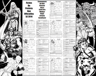 Fiches d'initiation inspirées de personnages iconiques, de cartes Magic et de figurines prépeintes.
