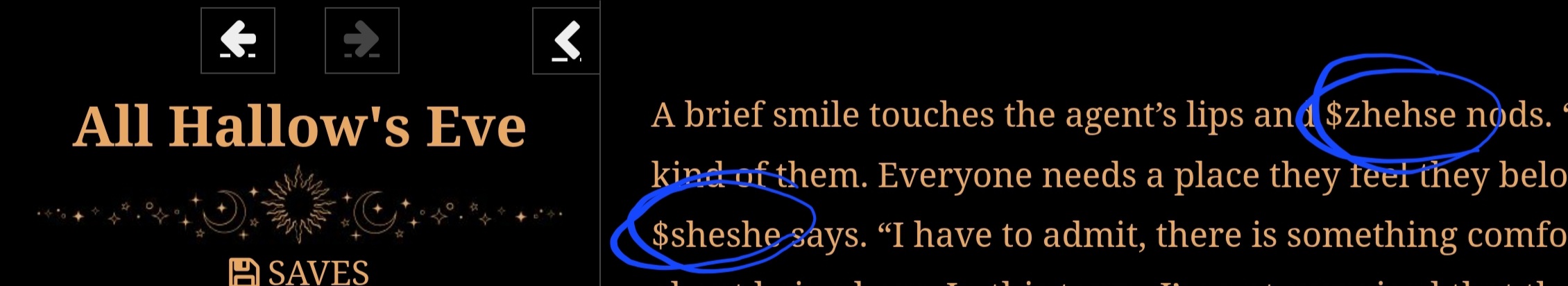 And also a part where the first paragraphs seemed to be from a different story route. I circled the part I believe to be the start of the page, and question-marked the ones I.... questioned ;) (pic 3).