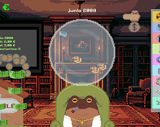 Un simulador de fiesta de gamedevs donde mejoras tus habilidades sociales para tratar de llegar al CEO.