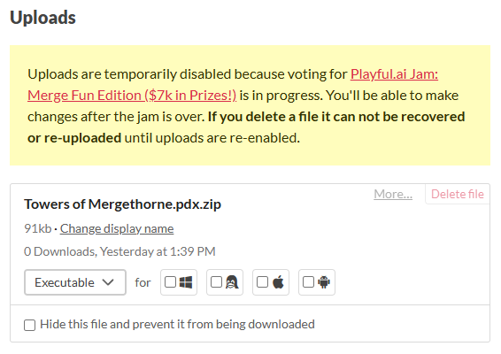 Thanks for the feedback! I have a lot of ideas on what to improve after the jam, especially sad that I didn't get to audio and music. Got a little wrapped up in the systems design like I always do.