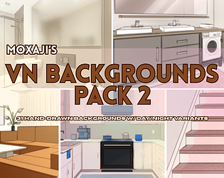 31 Hand-Drawn BGs (Day/Night) - Kitchen, Living Room, Bedroom, Driveway, Staircase, Utility Room, Foyer, Front Door
