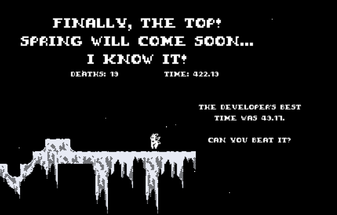 This was a very good game. I really liked how intuitive it was, and I was able to easily understand the objective through the creative dialogue. Obviously the graphics are not HD, but I think they were very charming for this short but sweet game. I like the exploration element and felt rewarded for doing so. Sound effects were a nice edition and impressive use of the limited camera. I just didn't know if there was something I might be missing as I didn't find any 'ending' and thought maybe I should do something with the hearts giving by the NPC's. Overall I had a lot of fun and would totally recommend it to my friends, 9/10!
