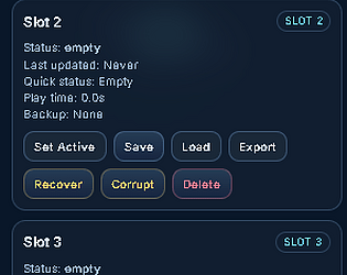 Save slots, quick save/load, auto-save, and IndexedDB persistence for HTML5 games.