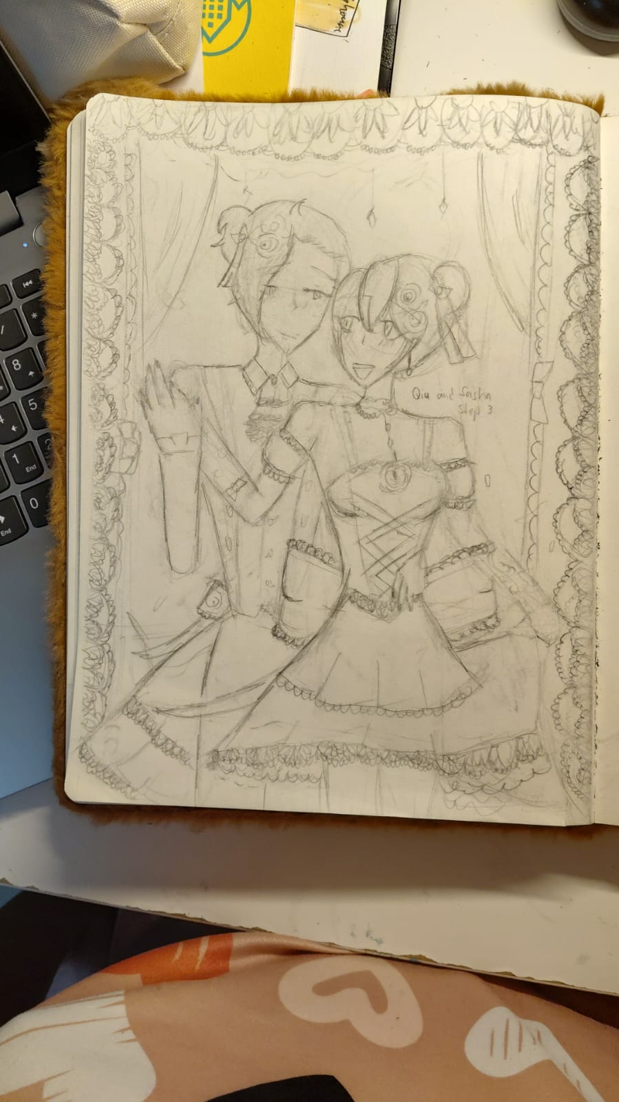 Guys sense I was super bored.... Here is a drawing of my MC Sasha with Qiu! (In step 3)