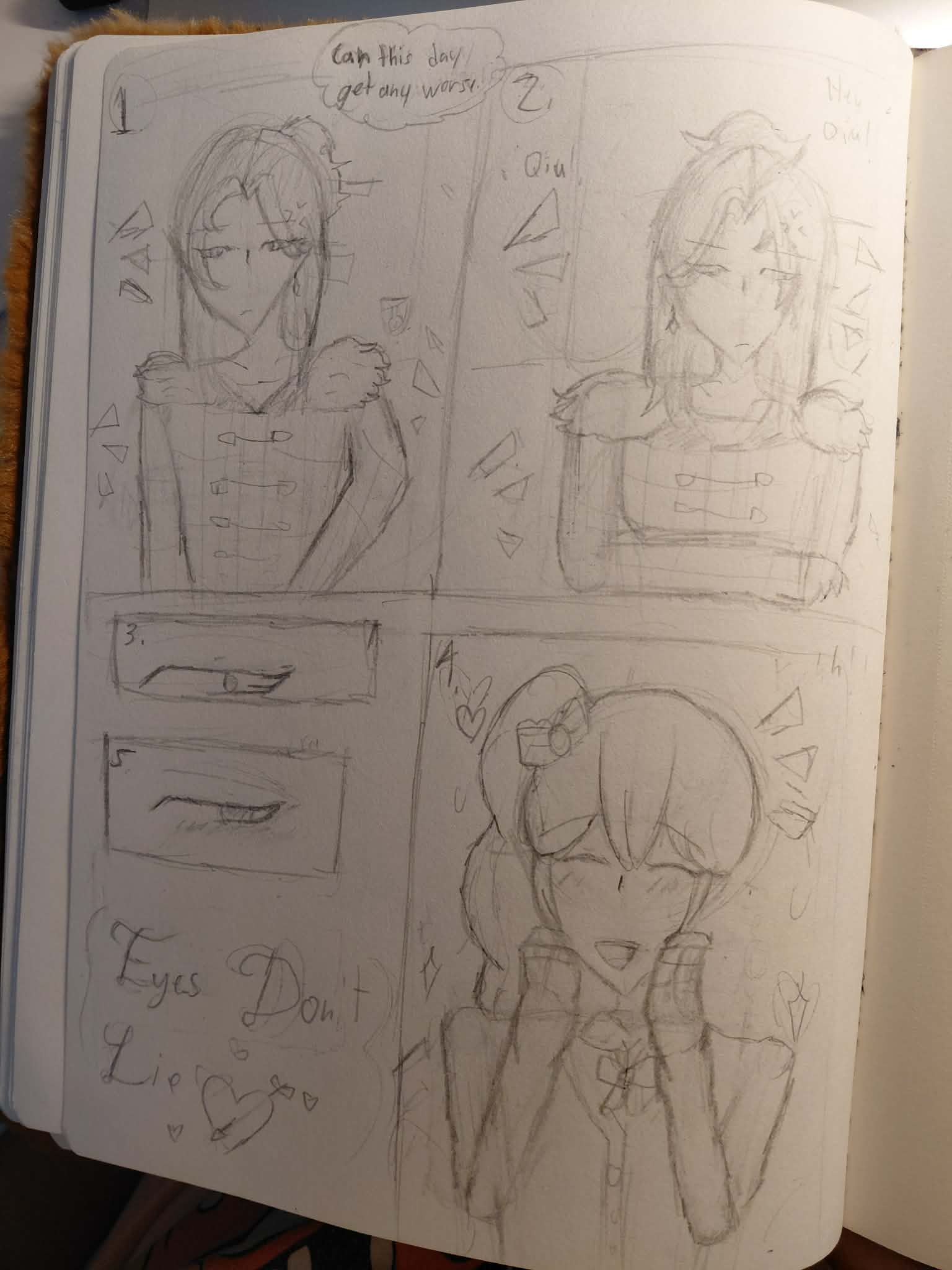 IM REALLY SORRRY IF YOU CAN'T READ WHAT IT SAYS, MY HANDWRITING IS SO BAD!! :( also notice how Qiu's eyes?