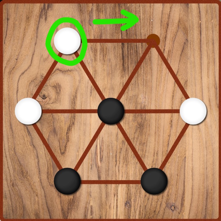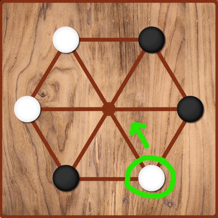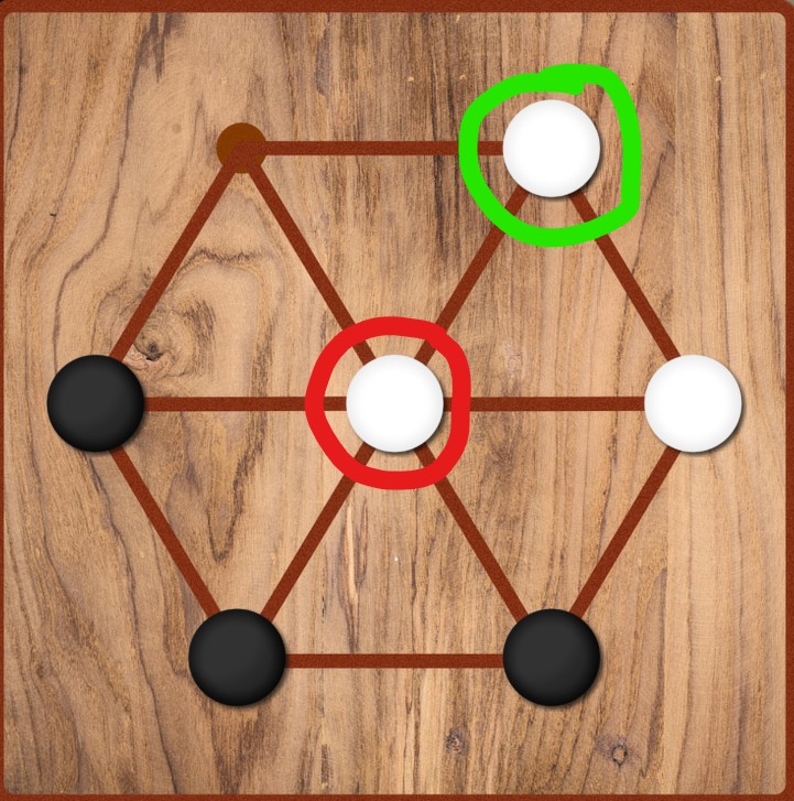 Selecting the center right stone would cause a loss. But selecting the green circled stone avoids the loss.